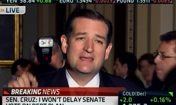 Ted Cruz blasts fellow Senate Republicans but says he will not delay vote on Senate debt deal.