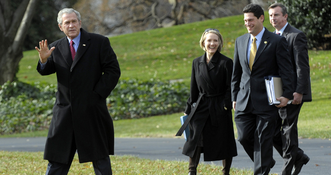 It also explains why Democrats say Republicans can’t avoid Bush even if they want to.