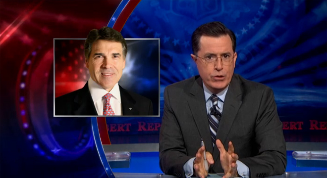 But there’s only one thing to say about Perry, Colbert said: “I like this guy.” After all, America doesn’t need a slick-talking president.