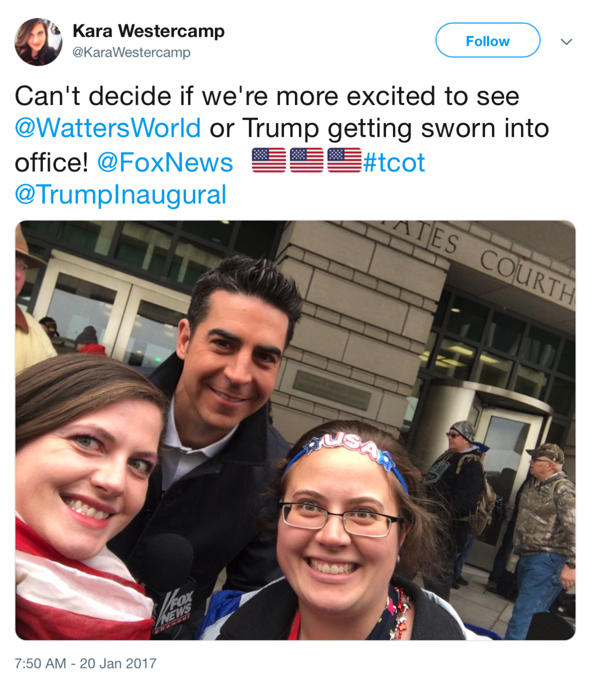 For my money, the bullet points on Westercamp’s résumé are less interesting than her Twitter/X account, which is now protected. To be fair, “protect my old tweets” is also what I would do if I were chasing a job that required me to swear an oath to faithfully and impartially enforce the law, and archived versions of my timeline suggested that I am the sort of aggressively online Trump loyalist who takes breathless #tcot selfies with Fox News talking heads, and enjoys Jim Halpert memes about how Critical Race Theory is racist.