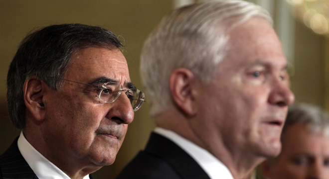 Speaking at a forum in Dallas, Robert Gates and Leon Panetta disagreed on whether the United States should ultimately carry out a military strike in retaliation for a chemical attack that the U.S. says killed 1,400 people. But both men said Obama shouldn’t have asked Congress to approve a strike, and both were skeptical and sometimes sarcastic about the current Russia-backed negotiations to have Syria turn over its chemical weapons.