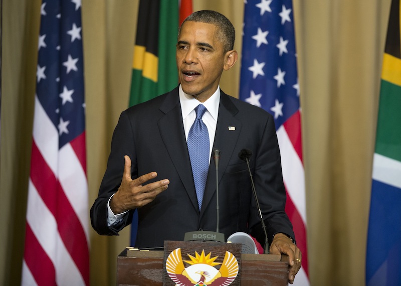 Obama spoke at a news conference with Tanzanian President Jakaya Kikwete (jah-KAH’-yah kee-KWEH’-teh).
