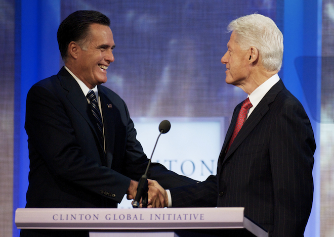 The Republican nominee was introduced by Clinton, who just weeks earlier delivered a primetime speech at the Democratic convention savaging Romney’s economic proposals. Romney broke the tension early, however, joking about the former president’s political popularity.