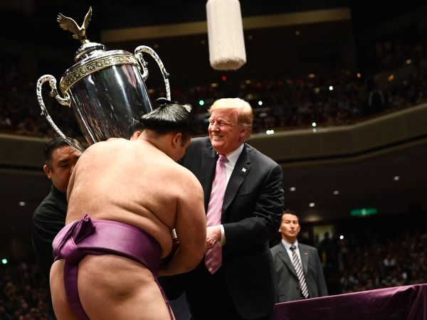 Watch Trump Give Enormous ‘President’s Cup’ To Sumo Wrestling Champion