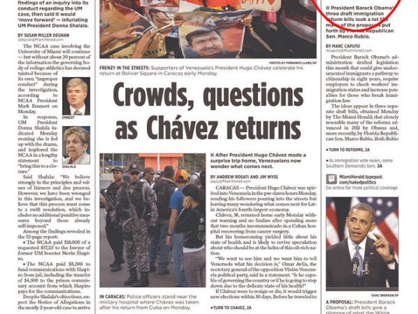 Miami Herald: ‘Obama’s Drafts Resemble Rubio’s Reforms’ (PHOTO)