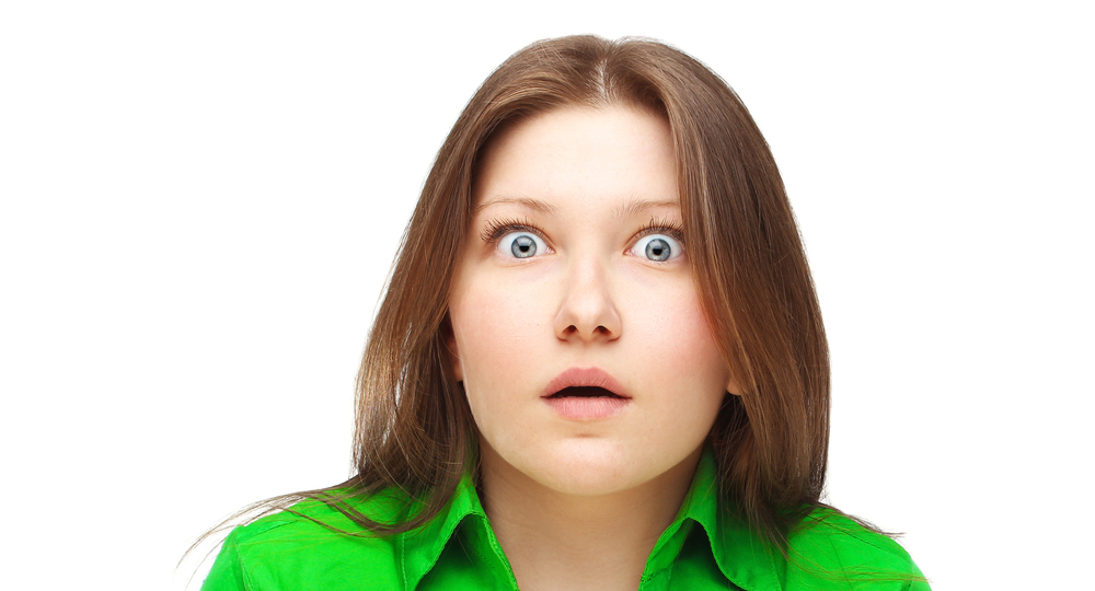“Stock Photo: shocked girl shrugging on white background” on Shutterstock.