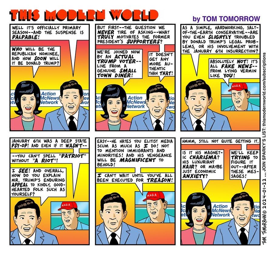 We’ve got a guy running for the third time who did not respect the result of the second time, and because he has money he can have his own media outlet that has thrown so much bullshit into our body politic that half the voting population are ready to go to guns.