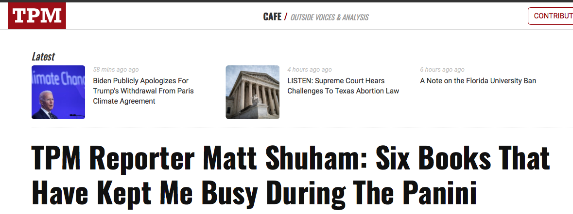 Comment below with some of your favorites! Also: You can always purchase any of the books by visiting our TPM Bookshop profile page.