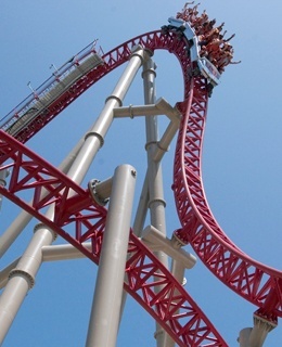 It feels like having watched drunken/high carnies the night before assemble this, and you’ve eaten too much cotton candy, and your friend dares you to go and you notice the safety bar doesn’t quite click into place as the spotty teenager brings it down