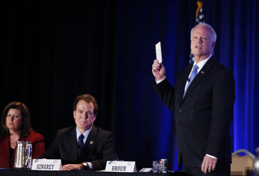 Of the five candidates at the event, Rep. Paul Broun (R-GA), engineer Derrick Grayson and businessman Eugene Yu said they would support impeachment. Former Georgia Secretary of State Karen Handel and attorney Art Gardner did not raise their hands.