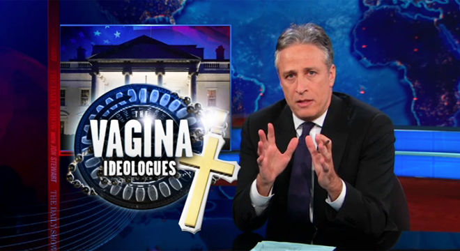 Jon Stewart on Monday caught himself up on the growing controversy over the Obama administration’s rule that employers provide birth control coverage in their health care plans.