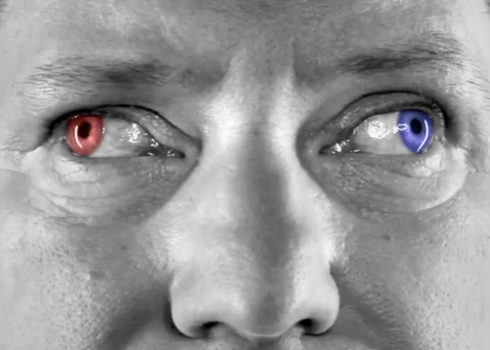 The ad, entitled “Eyeballs,” opens with a black-and-white extreme close-up on a man’s face, with a red eye and a blue eye pointed outward and away from each other. “For the past few years, the Republicans and the Democrats have only been looking one direction — too far to the right, or too far to the left. Most of us would agree that we need a governor with the vision to get Minnesota going in the right direction.”