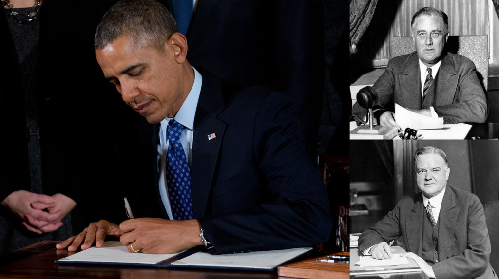 His 168 executive orders come out to less than 0.1 for every day he’s been in office. FDR, by comparison, was cranking out close to one per day as he faced the Great Depression and World War II. The first half of the 20th century was the prime time for execution action, at least when measured by executive orders per day in office. Herbert Hoover, Woodrow Wilson, Warren G. Harding and Calvin Coolidge rounded out the top five by that metric.