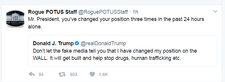 To confuse matters further, Trump published a cryptic tweet Tuesday morning blasting the fake media and saying that he hasn’t changed his position on the wall. However, his tweet did not address the timing of funding.