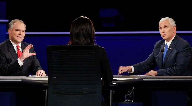 10:08 PM: A lot of this is very messy. But I think Kaine is landing bigger blows on Trump. When it comes to talking about standard conservative policy talk, Pence is holding his own, maybe even better than that. But Kaine is getting the key hits on Trump out in front of the audience more or less unrebutted. Not sure whether it’s intentional or not, but Pence seems to be angling more for 2020 than 2016.