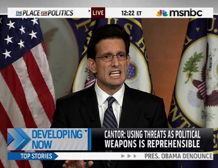 It wasn’t quite as bad as showing up this morning with a backwards B scraped on his cheek. But even so, it doesn’t look like anybody’s buying Eric Cantor’s nonsense. Even the AP is coming about as close as their stylebook will allow them to come to calling him on his nonsense about the bogus attack he tried to float in this morning’s press conference.