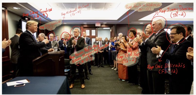 Donald Trump reportedly gave an angry fighting talk to House Republicans last night. We’re also led to believe they’re angry about the President’s family separation policy. But at least according to these photos released through the President’s Twitter feed, these folks were loving their dear leader. Bigly.