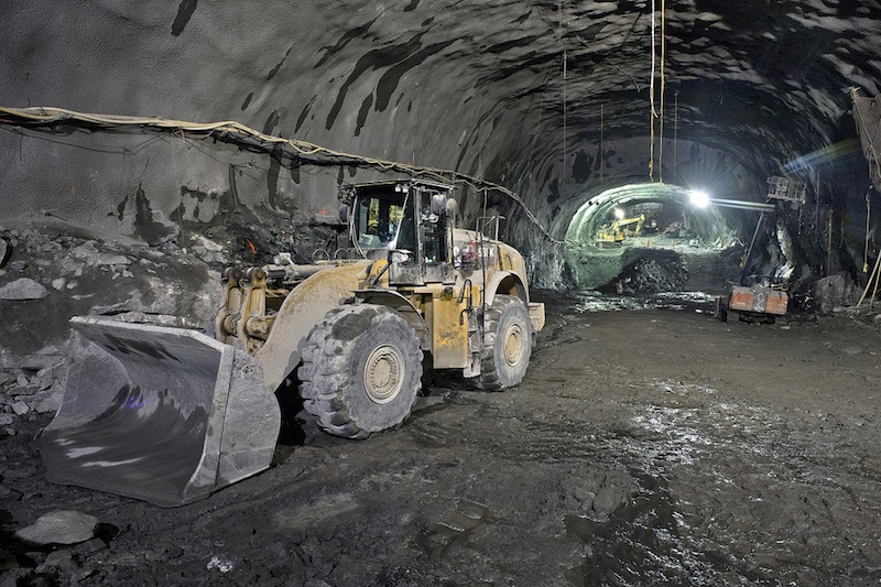 Specifically, they are covered in what’s known as “shotcrete”. Shotcrete is nothing more than concrete mixed at a standard 3000 to 4000 psi, but with a very high slump so it can be pushed through a hose and literally “shot” onto a wall or ceiling. (Slump is the measure of a specific concrete design’s plasticity, or workability. Paving concrete for roads, loading docks, aircraft runways and taxiways, and so on, has a very low slump, usually an inch or less, particularly if it’s being slip-formed; the same is true for tunnel “rings” if a tunnel is being cast in place as opposed to having pre-cast concrete panels installed.
