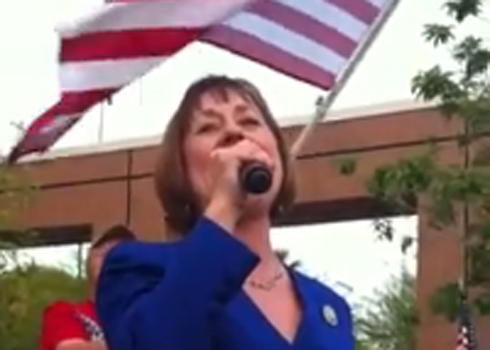 Failed Senate candidate Sharron Angle belts out “God Bless the USA” at weekend Tea Party event. Watch it.