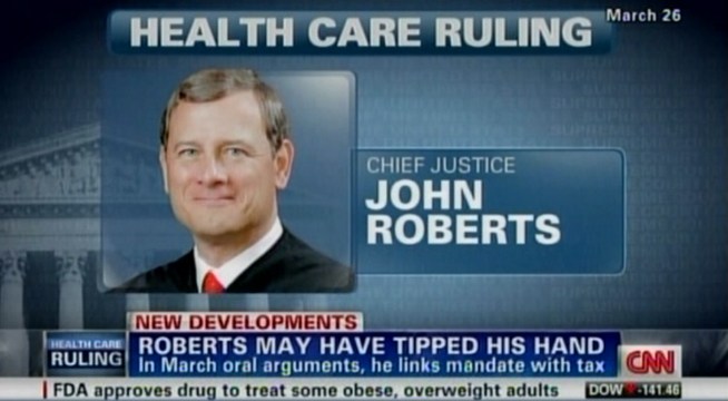 A short while ago we saw CNN run a breaking headline chyron about some new news they’d dug up. It turns out John Roberts gave a clue to his ruling during the hearings themselves. Right, what our Brian Beutler presciently reported at the time.