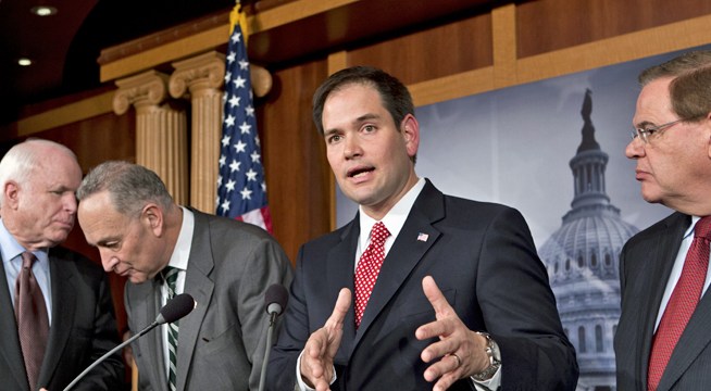 As a policy matter, Rubio’s already signed on to what most people mean by ‘comprehensive immigration reform’, what the President supports. As a political matter, he’s got to find things to fight with the President about, to bring along base Republicans — even if they’re basically made up differences. It won’t be easy.