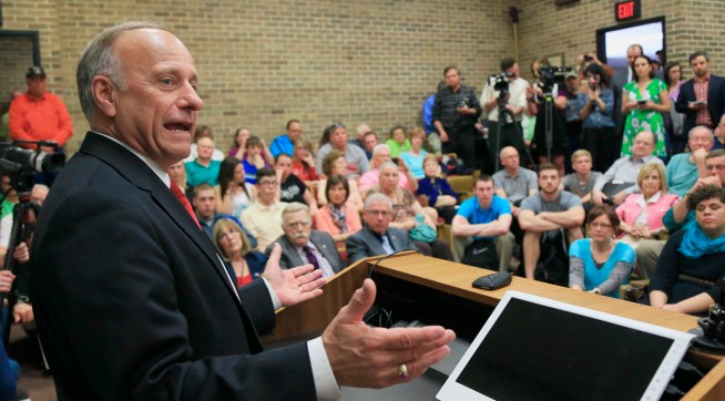 When asked by TPM this afternoon whether he supported Donald Trump’s ban on Muslim immigrants, Rep. Steve King (R-IA) says he believes Muslim immigrants should have to renounce Sharia law. But he has little hope that they will, since even the two current Muslim members of Congress won’t renounce Sharia Law.