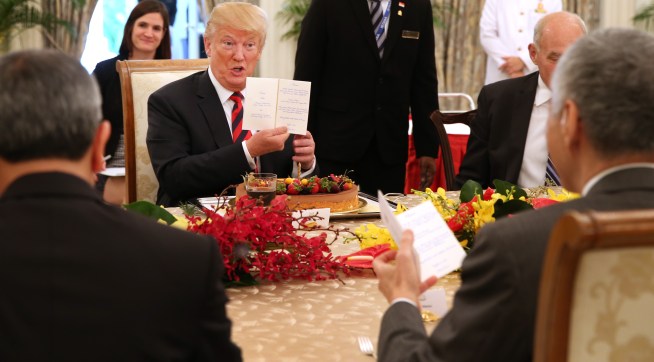 Trump: Well, we’ve given him, I don’t wanna talk about it specifically, but we’ve given him, he’s going to be happy. His country does love him. His people, you see the fervor. They have a great fervor. They’re gonna put it together, and I think they’re going to end up with a very strong country, and a country which has people — that they’re so hard working, so industrious. I think if you look at South Korea, someday, maybe in the not too distant future, it will be something that.