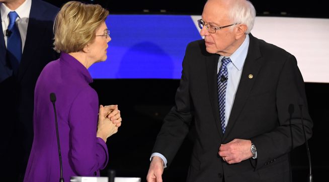 10:02 p.m.: The debate about the Warren-Sanders conversation was messy. Warren’s comments were similar to her press release: state quickly and unequivocally that Sanders did say it (and by implication is lying) and then quickly pivot to other general comments. Sanders’ answers were weird in large part because he sort of tried to change what was being discussed. That seemed shifty. On balance Warren got the better part of the exchange. But I think it could have gone a lot worse for Sanders. Warren closed the discussion with this which was very strong.