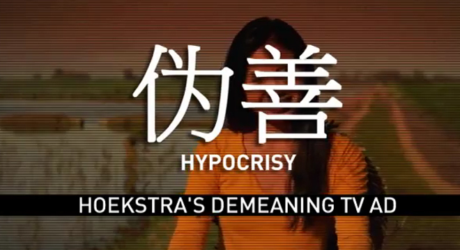 Earlier this week, former Rep. Pete Hoekstra, running for the GOP Senate nomination in Michigan, attacked Democratic incumbent Debbie Stabenow in an ad that was roundly criticized as offensive and racist for its portrayal of a Chinese woman speaking in broken English. Stabenow pushed back but steered clear of calling the ad racist. Now, however, a Republican is making the claims that Democrats did not.
