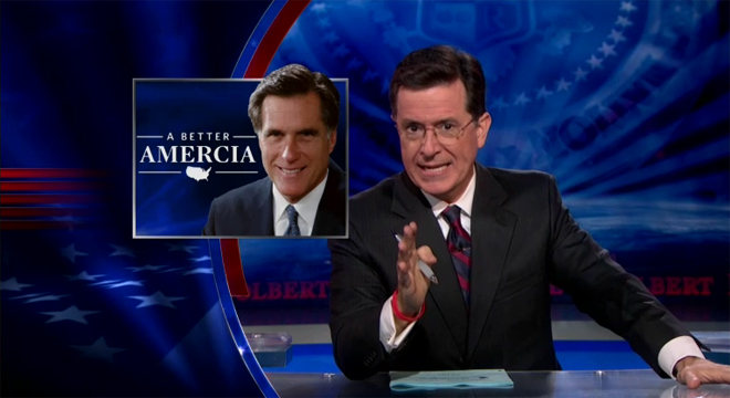 “Now Mitt Romney can become the president of America or Amercia,” Colbert said. “He’s just doubled the odds.” And it’s sure to please Donald Trump and his reinvigorated birther pals. “There is no proof (Obama) was born in Amercia,” Colbert said.