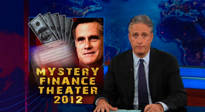 So are Democrats looking to make something out of nothing by harping on Romney’s lack of transparency? What would that look like, Stewart wondered. Roll the Fox News clips!