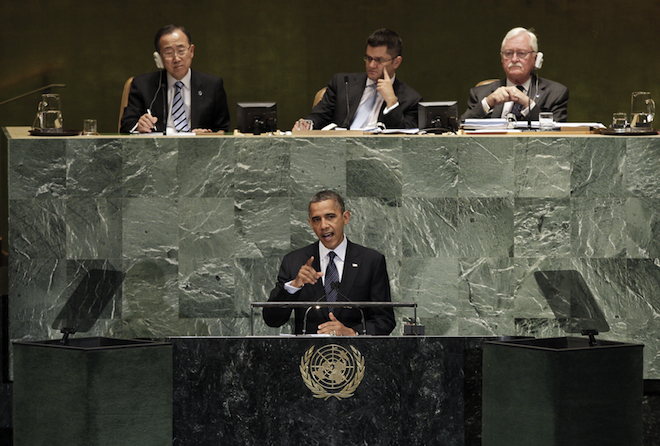 Turning to broader conflicts, Obama called on the UN’s members to further pressure and isolate Iran over its nuclear program. Israel’s Prime Minister Benjamin Netanyahu has publicly sparred with the president in recent weeks over his demand that the White House set clear “red lines” after which Iran might face military action. Obama alluded to this debate in his speech without naming any such conditions.