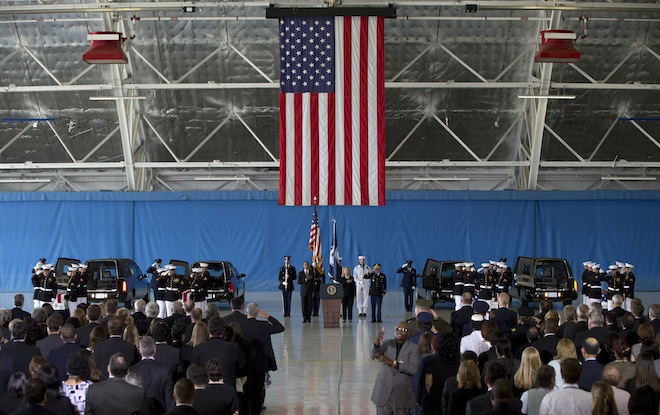 “Four Americans, four patriots, they loved this country and they chose to serve it and served it well,” Obama said during the ceremony at Joint Base Andrews in Maryland, just outside of Washington, D.C. “They had a mission and they believed in it, they knew the danger and they accepted it. They didn’t simply embrace the American ideal, they lived it.”