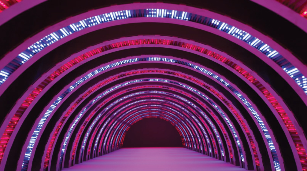 Whitney Musuem, Jenny Holzer 2009Rooftop solar is projected to take up even less space: just a quarter of one percent. Given the sprawling built environment already in place in the Golden State, that too should not be a problem. Where the modeling starts to get more aggressive, however, is in the projected savings from the transition from fossil fuels to electricity. Indeed, the model projects that by the year 2050, so much end-use efficiency is achieved, combined with the net energy reduction from transitioning from combustion, that total California energy demand is free to grow, even as its energy system is decarbonized.