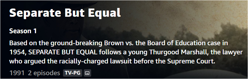 If you have never watched “Separate But Equal” starring Sidney Poitier you should check it out. First portion is background for the case(s). Second portion is about the Supreme Court battle.
