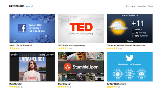 For Facebook, Opera notes on its blog that the Speed Dial extension allows users to see updated Facebook photos without visiting the website.