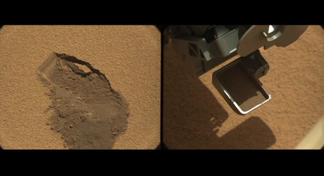 The rover will remain at its current site, Rocknest, for the duration of the scooping activities. NASA has said it needs to take at least four scoops of soil, some of which will be actually used to clean internal components of the rover’s instruments, which have a thin oily film from being on Earth that could prevent them from working properly on Mars unless scraped off with a sandy surface, which this area of Mars affords.