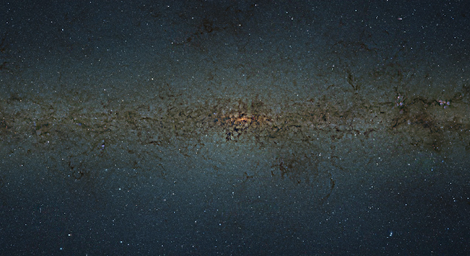 The nine-gigapixel image actually consists of thousands of images captured by the VISTA telescope’s 16 infrared detectors and stitched together. It measures 108,500 by 81,500 pixels.