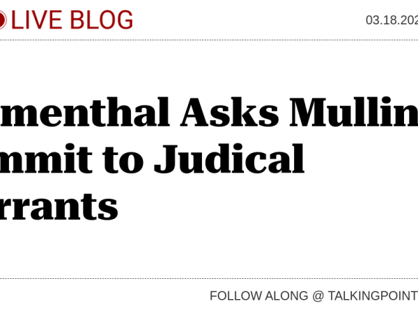 Blumenthal Asks Mullin to Commit to Judical Warrants