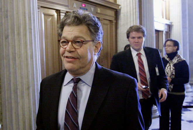Senate lawmakers on Tuesday night celebrated a third year of their gift exchange, which Franken came up with to bring colleagues from both sides of the aisle together for the holidays.