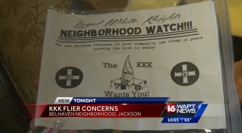 Reached by phone, a man who identified himself to WAPT as a KKK Grand Dragon said they distributed the fliers to let people know the Klan was in the neighborhood to protect residents from their Latino and black neighbors.