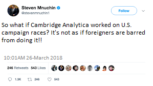 May the illegal activities of Cambridge Analytica tie up the Mercer’s and their money for a long, long time. And may it eventually land Bannon in jail. Throw in a deposing of the dotard and it will be the icing on top of the grift-cake.