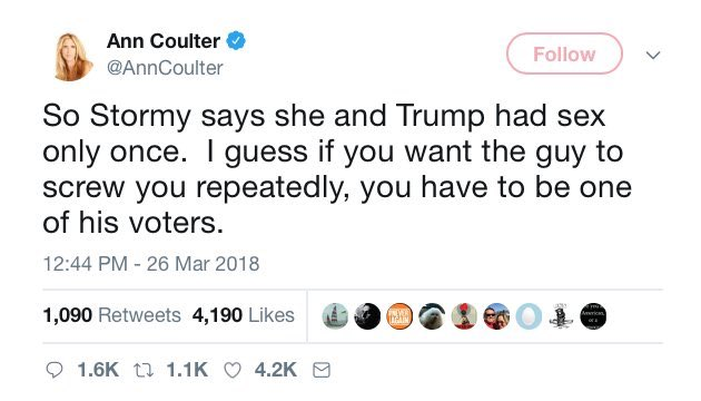 Coulter: “I guess if you want the guy to screw you repeatedly, etc, etc.”