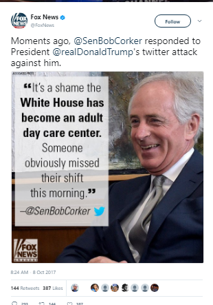 — Senator Bob Corker (@SenBobCorker) October 8, 2017