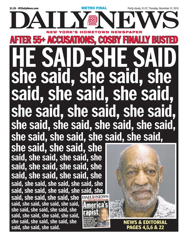 As the Daily News’ editorial board writes, “With the toll of Cosby’s alleged victims standing at more like 60, the weight of the evidence is actually ‘he said-she said, she said, she said, she said, she said, she said, she said, she said, she said, she said, she said, she said, she said, she said, she said, she said, she said, she said, she said, she said, she said, she said, she said, she said, she said, she said, she said, she said, she said, she said, she said, she said, she said, she said, she said, she said, she said, she said, she said, she said, she said, she said, she said, she said, she said, she said, she said, she said, she said.’”