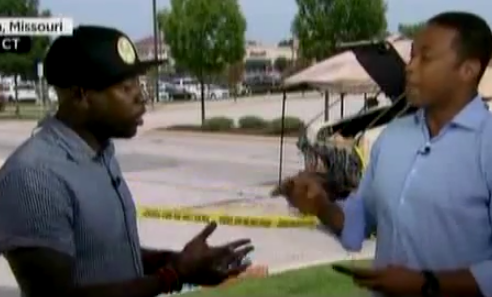 The segment started out pretty harmlessly with Kweli explaining why he thought it was important to be in Ferguson, taking issue specifically with a CNN.com story that was titled “Ferguson streets were calm until bottles fly.”