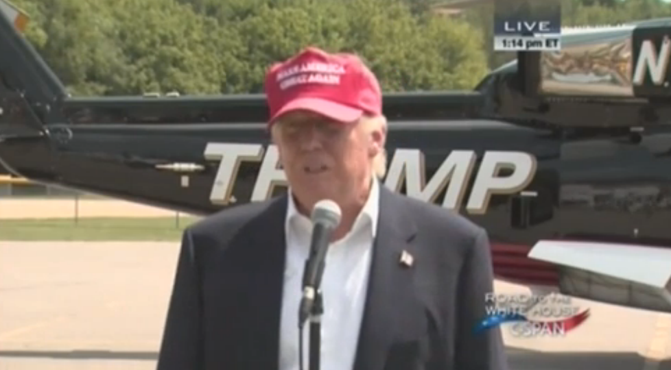 “Where are your parents?” — Donald Trump to kids as he leads them to his helicopter.