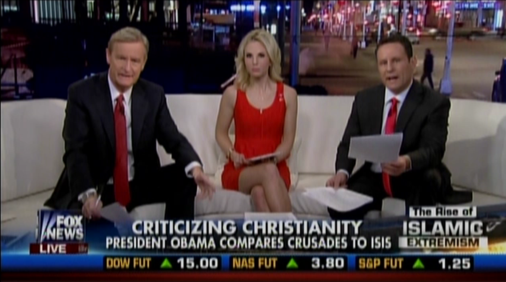 “How shocked were you,” Brian Kilmeade asked viewers, “about the President’s remarks yesterday at that prayer breakfast, equating the Crusades in the year 1095 to what we’re experiencing today and witnessing with ISIS and their brutality?”
