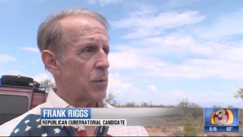 Immigration protesters, including gubernatorial candidate and former congressman Frank Riggs, had gathered in Oracle, Ariz. to rally against the expected arrival of a busload of Central American migrant children. A group of armed militiamen were providing security for Riggs, Phoenix TV station KTVK reported.