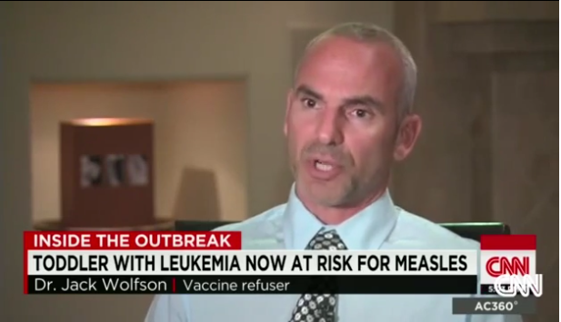 Wolfson was responding to a public appeal for all parents to vaccinate their children from Arizona pediatrician Dr. Tim Sacks, whose leukemia-stricken daughter was exposed to measles after an unvaccinated American family introduced the disease into the greater population during a trip to Disneyland.